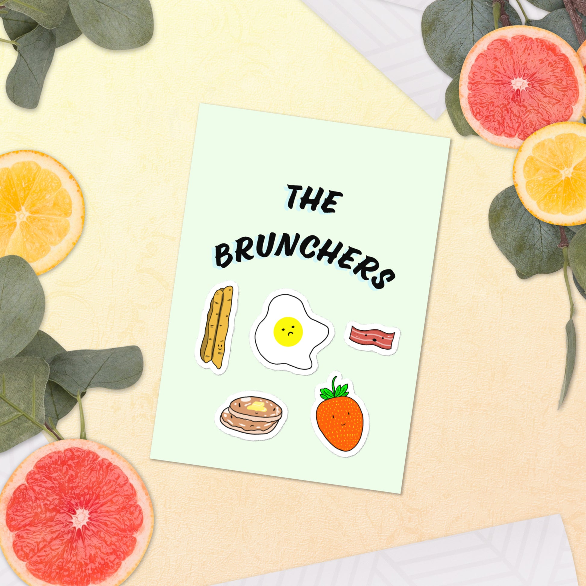Some classic brunch items, featuring eggs, pancakes, you tiao, strawberries, and bacon